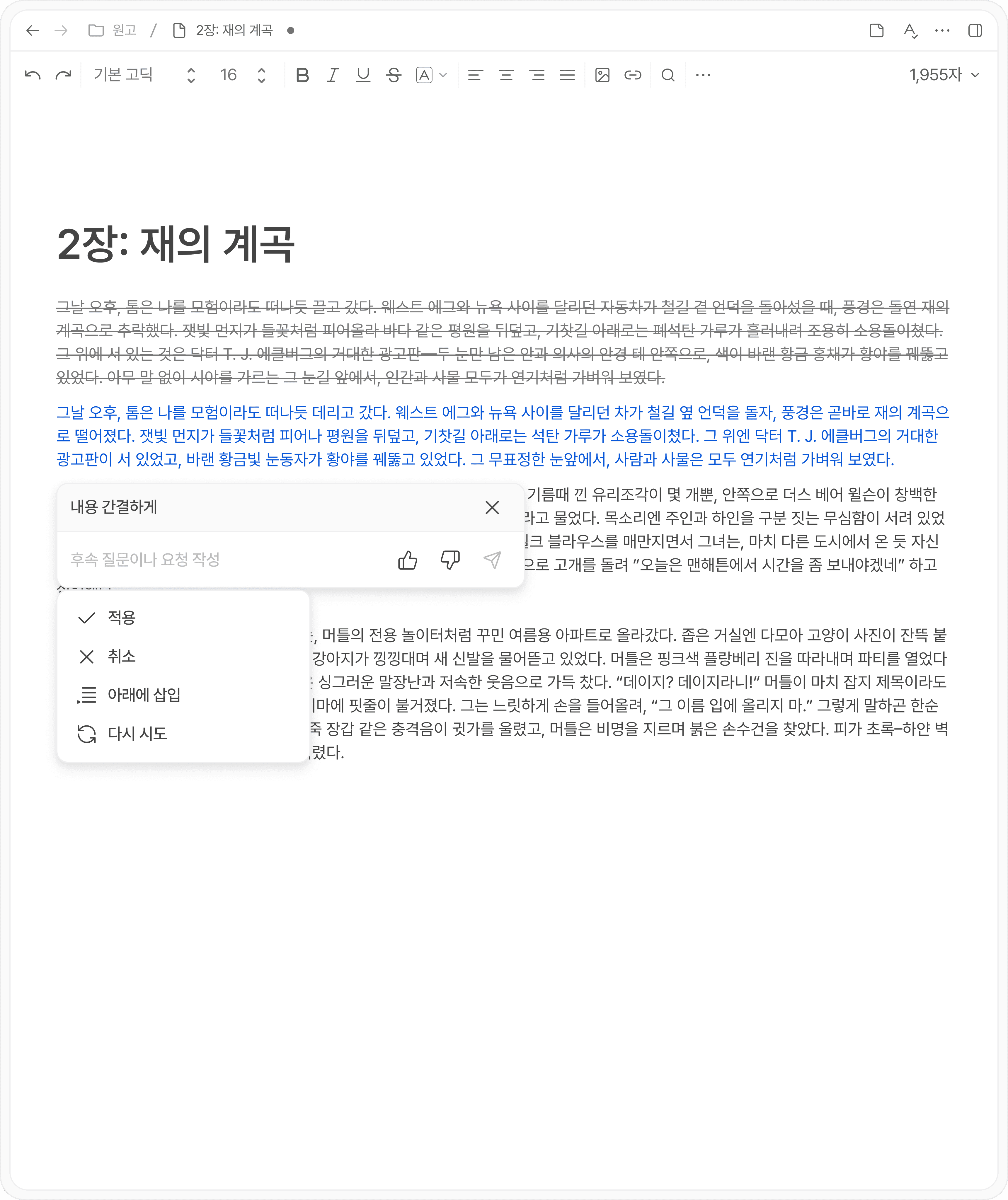 군더더기 없이 매끄럽게, 쓰는 흐름 그대로 이어지는 글쓰기 환경.
