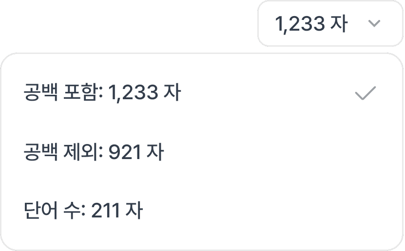 작성한 글의 분량을 정확히 확인해요.
