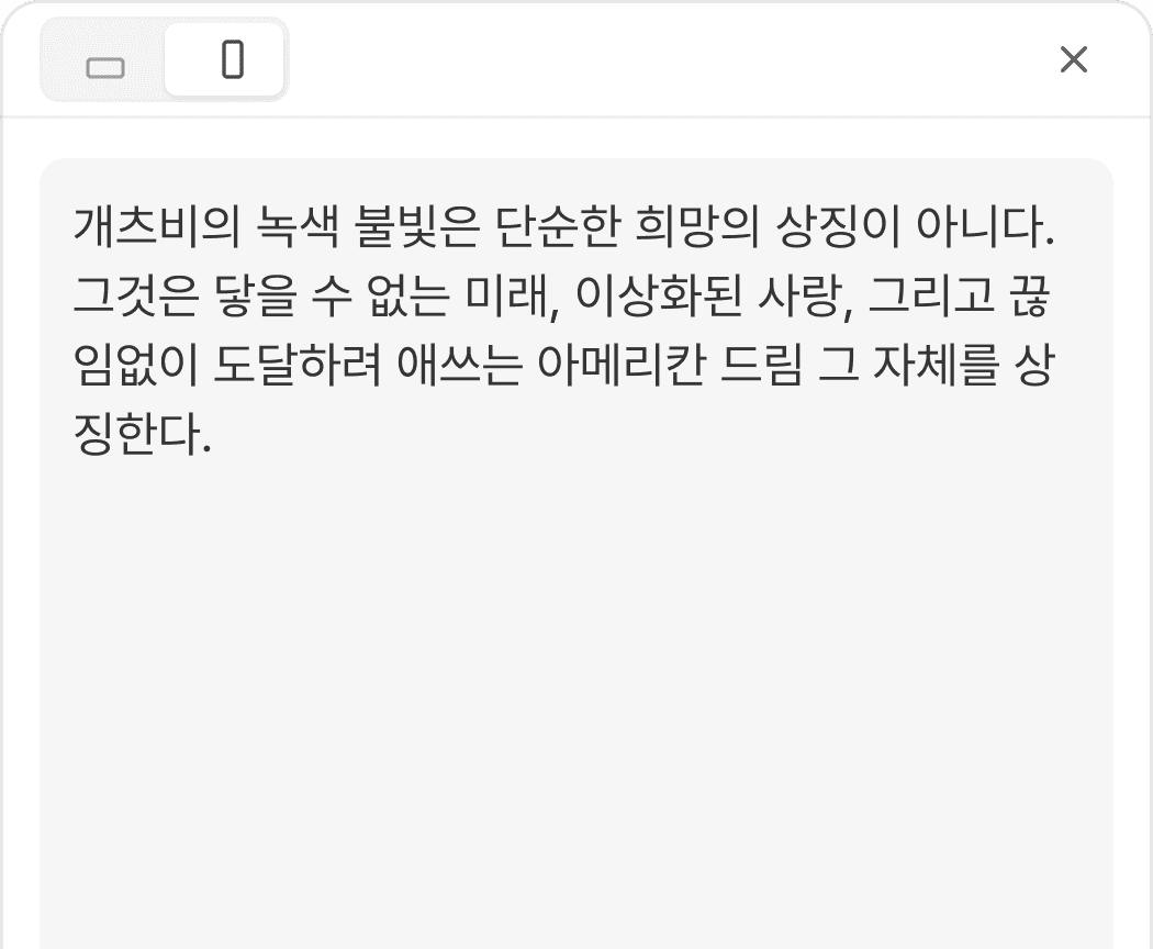 간편한 맞춤법 검사 기능으로 교정 시간이 절반으로 줄었어요. ‘모바일 뷰어 모드’ 덕분에 제 글이 스마트폰에서 어떻게 보일지 바로 확인하며 글쓸 수 있어요.